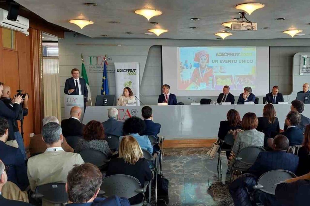 La 41esima edizione di Macfrut è stata presentata il mese scorso all’Agenzia Ice alla presenza di Francesco Lollobrigida Ministro MASAF, Matteo Zoppas Presidente Agenzia Ice, Renzo Piraccini Presidente di Macfrut, Fabio del Bravo Direttore Servizi Sviluppo Rurale Ismea, Donato Pentassuglia Assessore Agricoltura Regione Puglia, Marco Riccardo Rusconi Direttore AICS (Agenzia Italiana per la Cooperazione e lo Sviluppo), Stefano Gagliardi Direttore ASSOAVI (Associazione Nazionale Allevatori e Produttori Avicunicoli). Sono intervenuti anche Letizia Pizzi di Assafrica e Giandomenico Consalvo, Presidente Civi Italia.